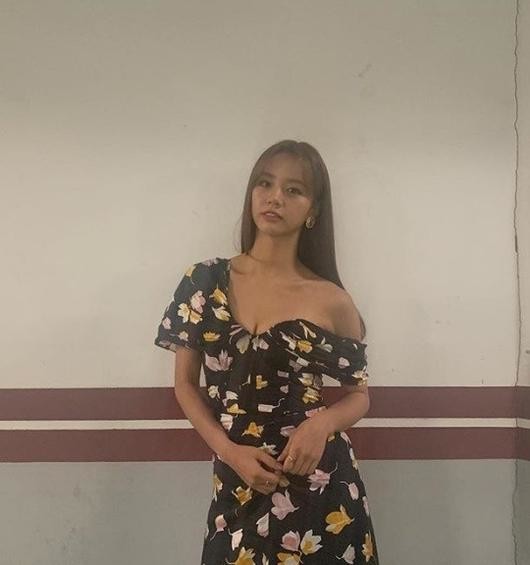 공개된 사진 속 혜리는 화려하게 프린팅된 드레스를 입고 미모를 뽐내고 있다.