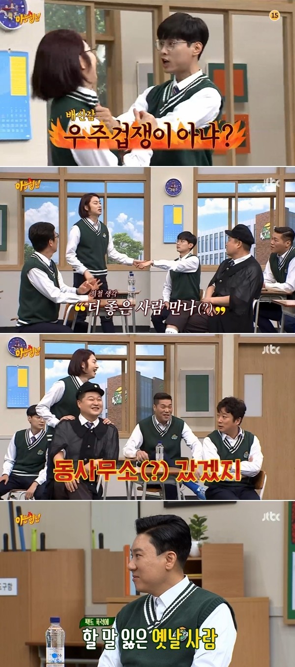 다른 멤버들이 "옛날 사람들이 헤어지는 방식이 뭐냐"고 묻자 김희철은 "옛날에는 '더 좋은 사람 만나'이러지 않나"라고 말했다. 이어 이상민에게 "옛날 사람인 형은 어떻게 헤어졌냐"고 물어 이상민을 당황하게 만들었다.