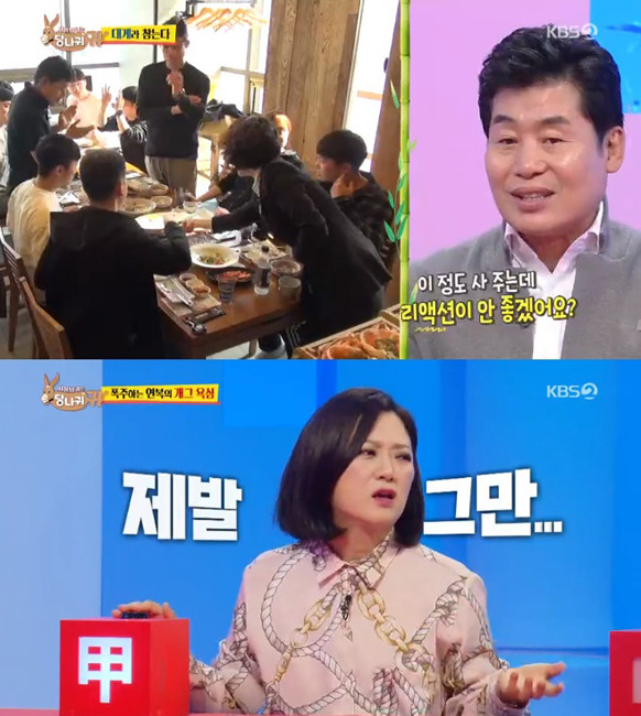 이연복은 그러나 대게를 두고 아재개그를 펼쳤고, 직원들은 억지 미소를 감추지 못했다.