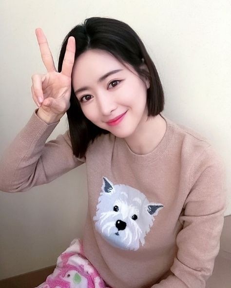 공개된 사진 속엔 강아지가 새겨진 티셔츠에 수면바지를 입은 홍수아가 환한 미소를 짓고 있다.