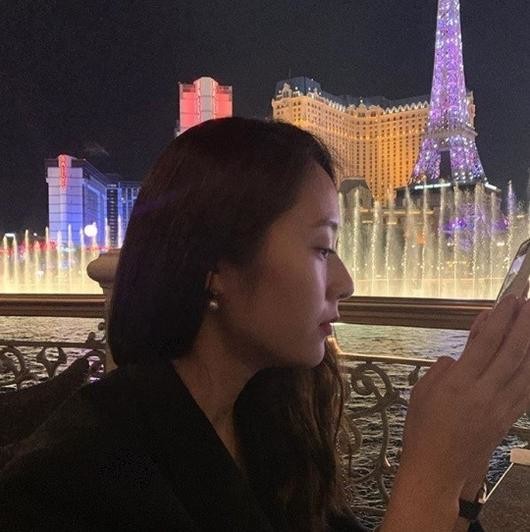 공개된 사진 속 크리스탈은 미국 라스베이거스의 화려한 배경을 뒤로 즐거운 시간을 보내고 있다.