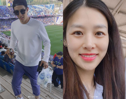 장신영은 5일 자신의 SNS에 축구경기장 나들이에 나선 가족의 모습을 담은 사진 여러 장을 게재했다. 공개된 사진에는 경기장에 있는 강경준의 모습이 담겨 있다.