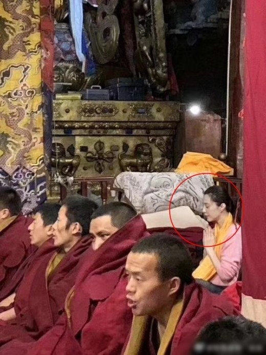 하지만 사찰 안에서는 얼굴을 드러냈다. 화장기 없는 민낯의 판빙빙은 승려들 뒤에 앉아 두 손을 모으고 눈을 감은 채 간절하게 기도를 하고 있다.