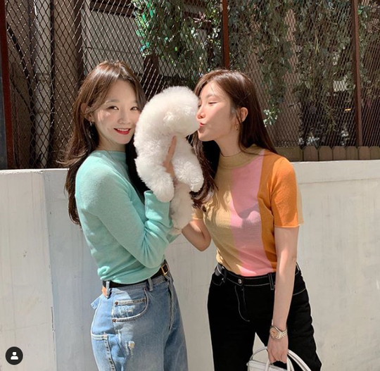 공개된 사진에서 이해리는 강민경의 반려견 휴지와 입을 맞추고 강민경은 카메라를 응시하고 있는 모습으로 보는 이들에게 훈훈함을 자아냈다.