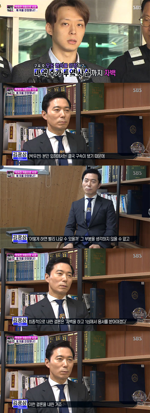 김광삼 변호사는 이와 관련해 "박유천 본인 입장에서는 결국 구속이 됐기 때문에 '어떻게 하면 빨리 나갈 수 있을까' 그 부분을 생각하지 않을 수 없고, 최종적으로 내린 결론은 '자백을 하고 1심에서 용서를 받아야겠다' 이런 결론을 내린 거죠"라고 밝혀 눈길을 끌었다.