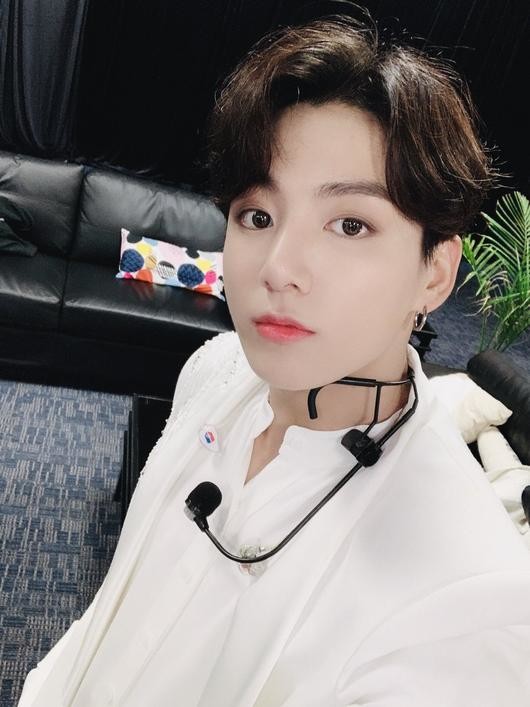 공개된 사진 속 정국은 하얀 무대 의상을 입고 있다. 하얀 피부와 뚜렷한 이목구비가 시선을 사로잡는다. 특히 카메라를 빤히 바라보는 정국의 똘망똘망한 눈빛이 매력적이다.