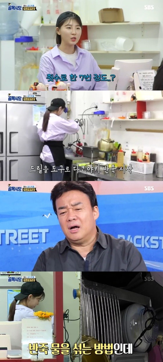 가장 먼저 백종원은 꿈뜨락 몰의 다코야키 집을 찾았다. 그리고 그는 충격적인 위생 상태에 경악했다.