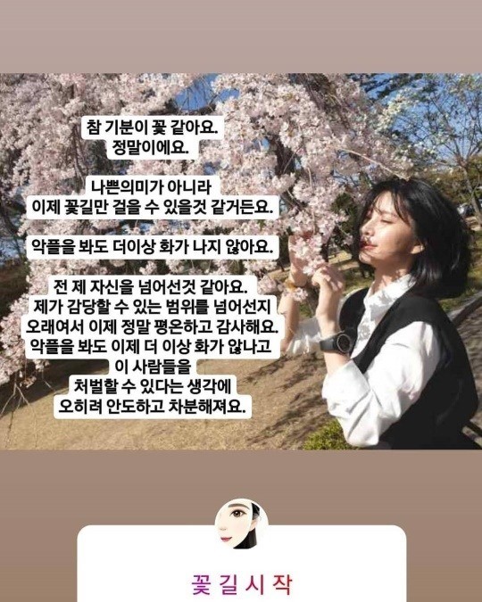 이어 윤지오는 "나쁜 의미가 아니라 이제 꽃길만 걸을 수 있을 것 같거든요"라며 "악플을 봐도 더 이상 화가 나지 않아요"라고 말하기도.