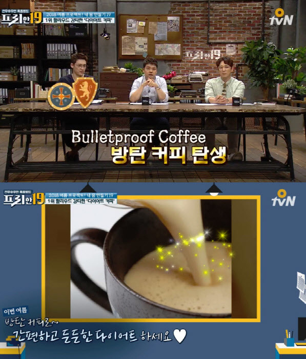 과거 방송된 케이블채널 OtvN '프리한 19'에서는 할리우드를 강타한 다이어트 커피 '방탄커피'를 다이어트 식품 1위로 꼽는 모습이 전파를 탄 바 있다.