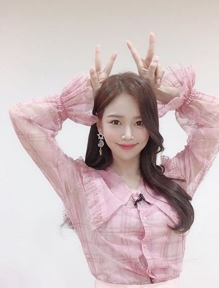 공개된 사진 속 강예슬은 긴 웨이브 헤어스타일을 하고 귀여운 표정을 하고 포즈를 취하고 있다.