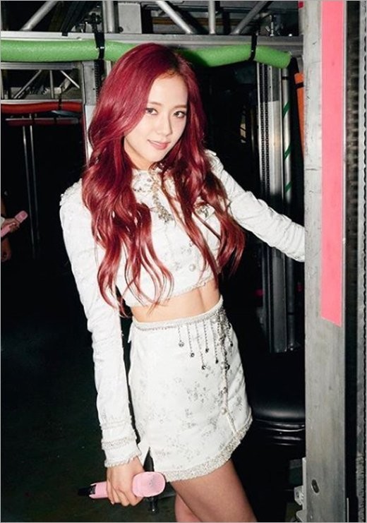공개된 사진 속 지수는 화이트 투피스에 와인빛 헤어와 선명한 복근을 드러냈다. 핑크색 마이크를 들고 카메라를 그윽하게 바라보는 지수의 모습이 팬들을 설레게 한다.