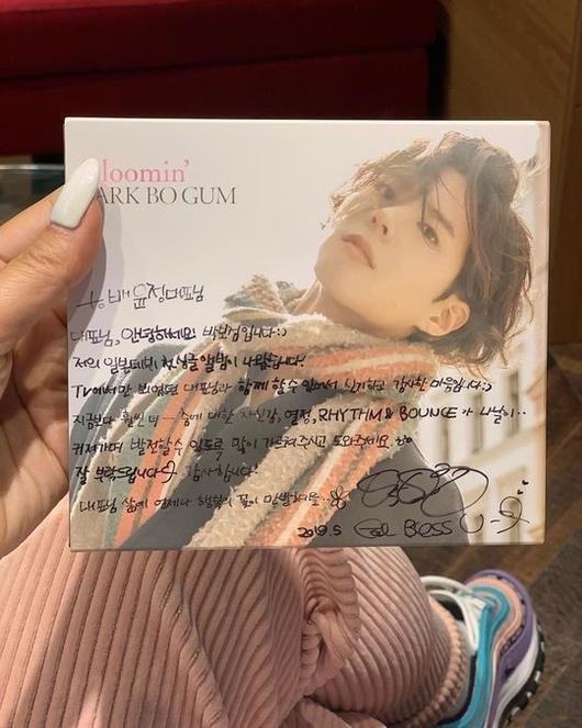 공개된 사진 속에는 박보검의 사인 CD 모습이 담겼다. 박보검은 정갈한 글씨로 배윤정에게 감사 인사를 전하고 있어 눈길을 사로잡는다.
