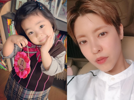 공개된 사진 속 라니는 꽃받침 포즈를 하고 직접 만든 카네이션 액자를 들고 있다. 액자 속에는 하트를 든 라니의 사진이 담겼다. 앙증맞은 라니의 모습이 사랑스럽다.