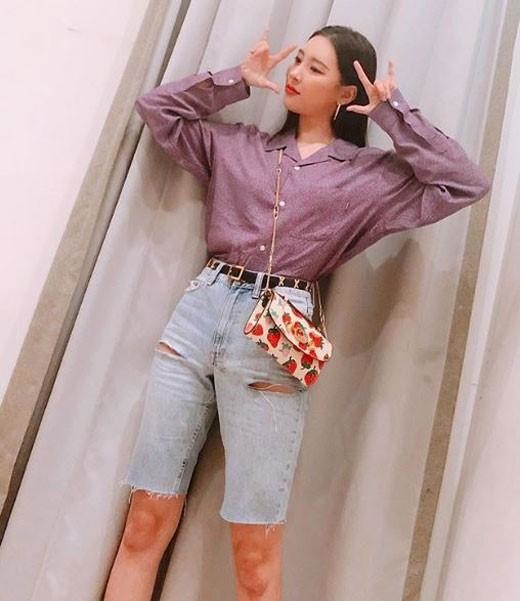 선미는 7일 본인의 인스타그램에 "오힝"이라고 적고 사진을 업로드했다. 사진 속에서 그녀는 트와이스의 '팬시' 포즈로 상큼함을 과시했다.
