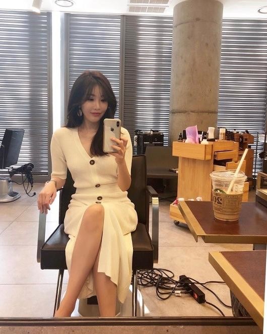 사진 속 이해리는 아이보리 컬러의 롱 원피스를 입고 의자에 앉아 거울 셀카를 찍고 있다. 이해리는 청순한 분위기로 시선을 사로잡았다.
