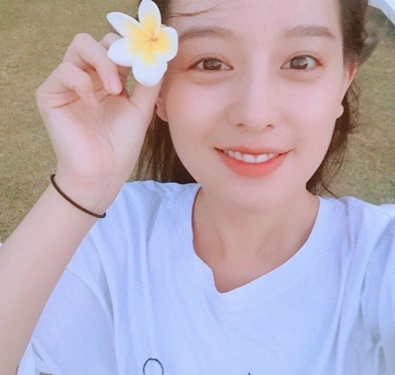 공개된 사진 속엔 화장기 없는 얼굴에 포니테일을 한 김지원이 꽂을 들고 환한 미소를 짓고 있다.