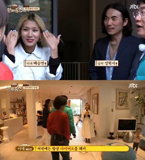 이어 집에 도착한 이들은 디자이너로 활동 중인 배승연(요니P), 정혁서(스티브J) 부부였다. 사실 스티브윤이 아닌 배승연(요니P)-정혁서(스티브J) 부부의 집이었던 것이다. 배승연은 "집이 사실 방송에 몇 번 나왔다. 저녁엔 다이어트를 해서 밥을 잘 안 먹는다"면서도 푸짐한 한 상을 차렸다.
