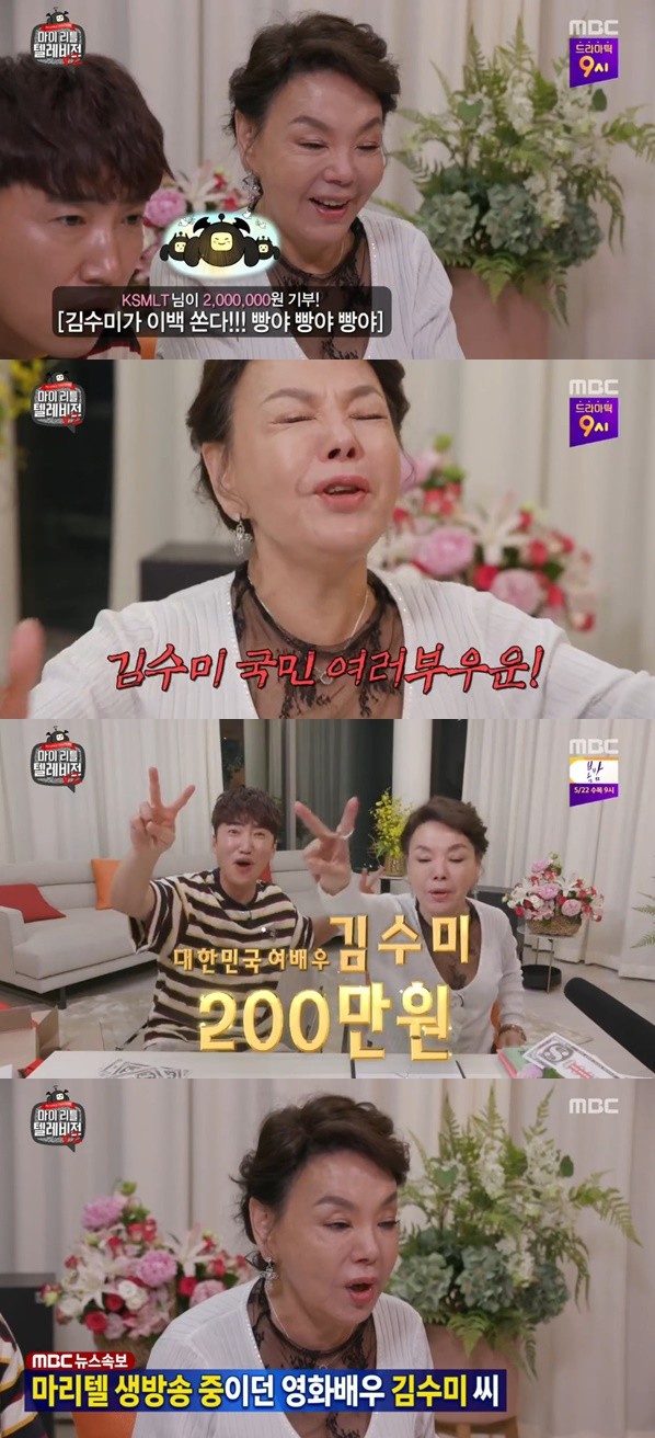 최근 방송된 MBC 예능프로그램 '마이 리틀 텔레비전 V2'(이하 '마리텔V2')에서는 김수미가 자신의 방송에 200만 원을 기부하는 모습이 안방을 찾아갔다.