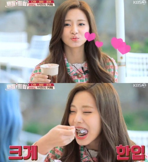이날 먼저 브런치 카페를 찾은 트와이스 멤버들. 빵을 좋아하는 쯔위는 빵 삼매경에 빠진 모습을 보였다. 멤버들은 “쯔위가 빵순이다”라며 트와이스 멤버들도 인정하는 빵마니아임을 언급했다.
