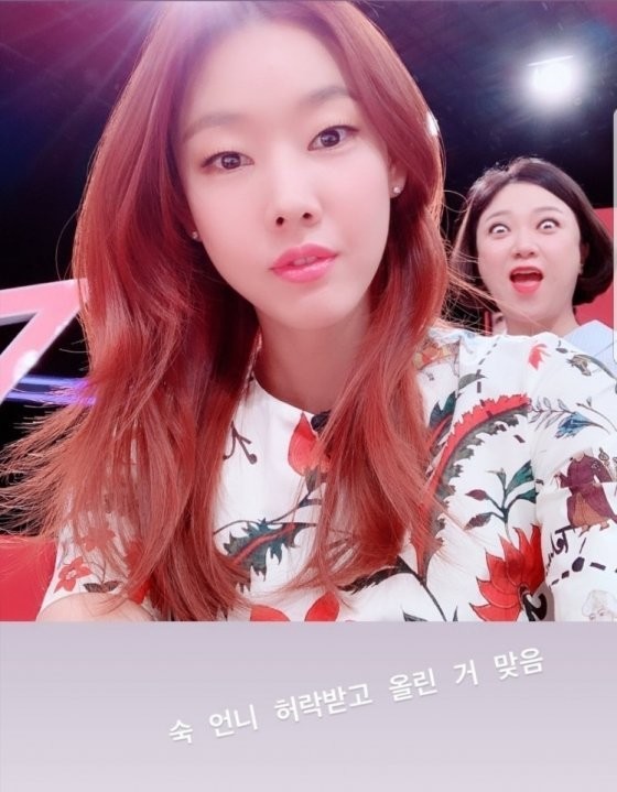 한혜진은 11일 자신의 인스타그램 스토리에 "숙 언니 허락받고 올린 거 맞음" 이란 글과 함께 사진을 게재했다.