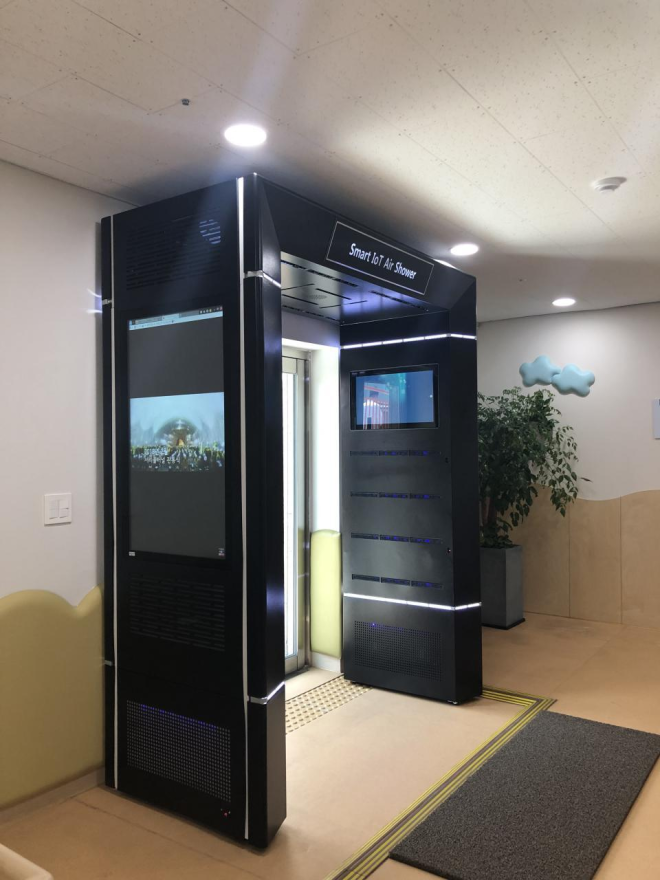 미세먼지나 폭염 등에도 영향없이 영유아들이 실내에서 체육활동을 할 수 있도록 조성된 ‘서리풀 노리학교’의 업그레이드 방안으로 스마트 에어커튼 기술을 활용하여 외부로부터 들어오는 미세먼지를 차단하고 시설 출입 시에 인체와 몸에 붙은 미세먼지를 털어내고, 털어낸 먼지는 실내로 들어갈 수 없게 집진기로 모아지도록 설계하여 영유아 미세먼지 안심공간으로서의 기능을 강화 했다.
