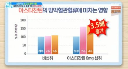 최근 건강 보조 제품으로 떠오른 크릴오일과 헤마토코쿠스에도 아스타잔틴이 함유되어 있다고 해 놀라움을 자아냈다. 크릴오일에 들어있는 아스타잔틴은 뇌 노화 예방에 탁월하며 효과적인 황산화 효과를 보여준다. 헤마토코쿠스' 속 아스타잔틴도 마찬가지로 황상화눈 속 염증을 제거하고 강력한 황산화 작용을 해 치매 예방과 눈 건강에 도움을 준다.
