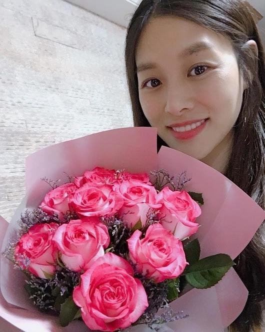 공개된 사진 속 장신영은 분홍색 꽃다발을 든 채 사진을 찍고 있는 모습. 장미꽃만큼 화사한 비주얼이 시선을 끌었다. 초롱초롱한 눈빛과 맑은 피부 또한 감탄을 자아냈다.