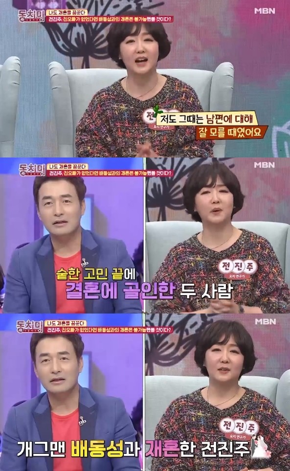 배동성과 재혼한 지 1년 6개월 된 요리연구가 전진주는 연애시절 불편했던 점을 떠올렸다. 전진주는 "남편이 일반인도 아니고 연예인 아니냐. 뭘 하나 먹어도 남의 시선이 불편하다. 차를 마셔도 불편했다"고 돌이켰다.