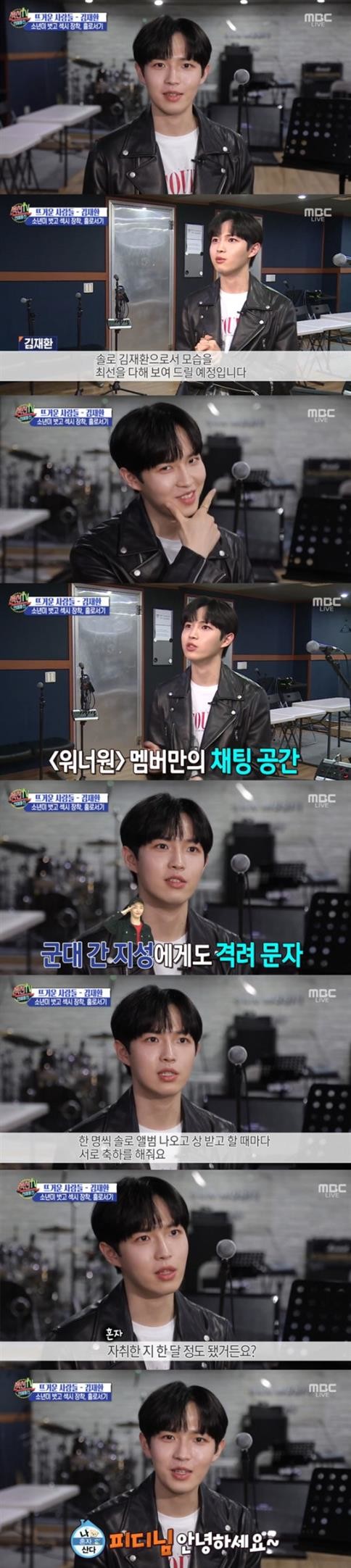 김재환의 솔로 활동을 앞두고 워너원 멤버들의 응원도 이어졌다. 김재환은 "단톡방이 있다. 오늘 같은 경우에는 지성이 형이 군대를 갔는데 그 부분에 대해서 많은 이야기를 했다"고 말했다. 그러면서 "한 명씩 솔로 앨범이 나오고 상을 받고 할 때마다 서로 축하를 해 준다"고 끈끈한 우정을 언급했다.