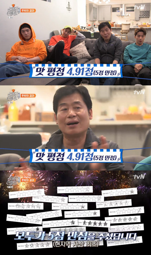 그리고 오늘 방송에서 공개된 두 마리 치킨에 대한 손님들의 성적표가 공개됐다. 맛 평가는 5점 만점에 4.91점을, 서비스 점수는 무려 5점 만점을 받았다. 이에 모두들 놀라며 기쁨을 드러냈다.