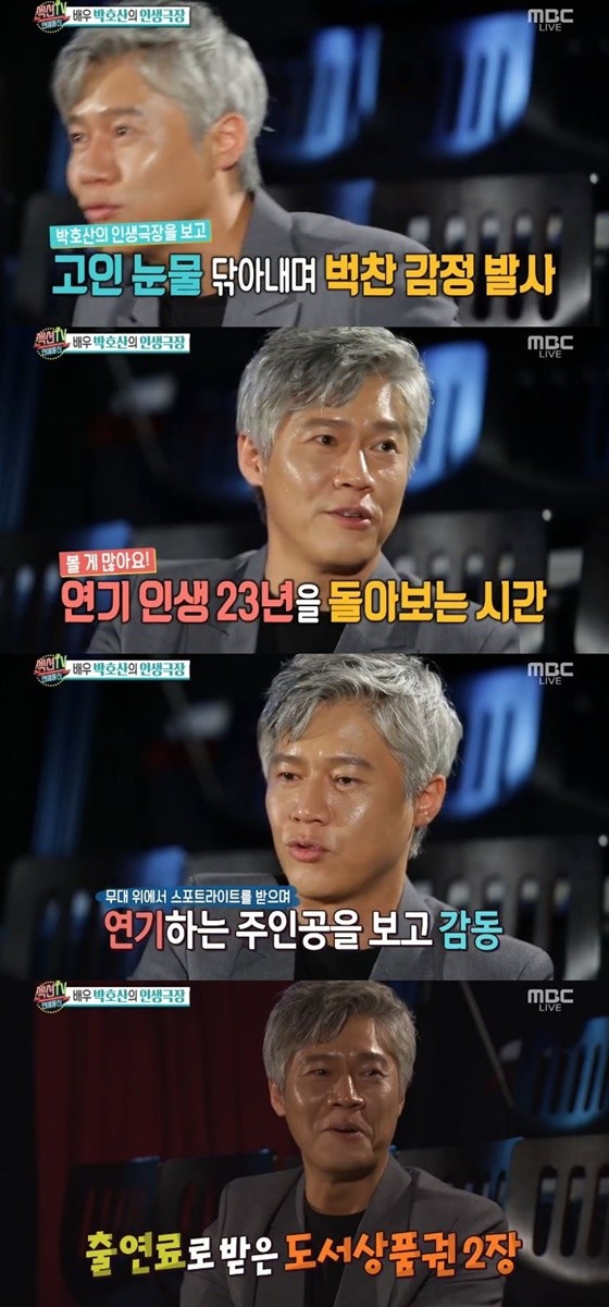 이어 박호산은 "첫 배역을 받아서 공연을 했을 때 도서상품권을 받았다"고 털어놨다. 박호산은 통기타를 치며 노래를 불러 매력을 뽐내기도 했다.