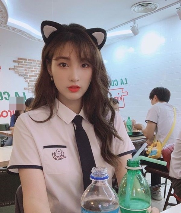 사진에서 율희는 한 놀이동산에 동물 머리띠와 교복 같은 의상을 착용한 모습으로 보는 이들의 감탄을 자아냈다.