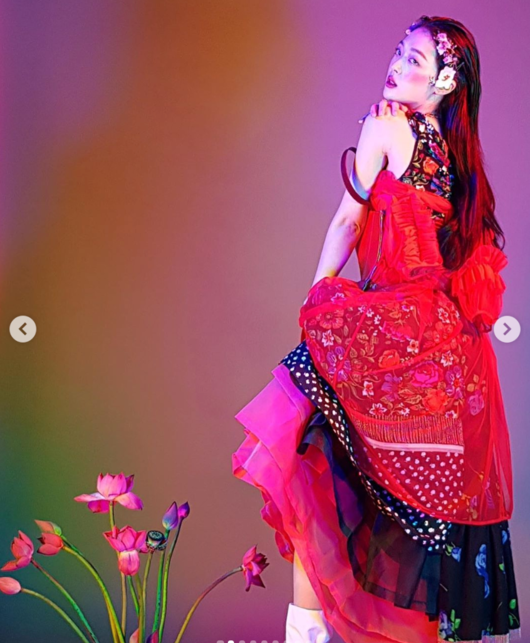 설리는 15일 자신의 인스타그램에 여러 장의 사진을 게재했다. 공개된 사진 속 설리는 동양미가 넘치는 의상과 메이크업, 헤어 스타일로 눈길을 끌었다.