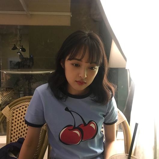 공개된 사진 속 김보라는 멍한 표정으로 앉아있는 모습이다. 김보라는 체리 무늬가 들어간 티셔츠를 입고 상큼한 매력을 내뿜고 있다.