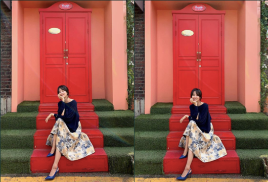 사진 속에서 박하선은 우아한 의상을 입고 귀여운 표정을 짓고 있다. 박하선의 늘씬한 몸매가 눈에 띈다.