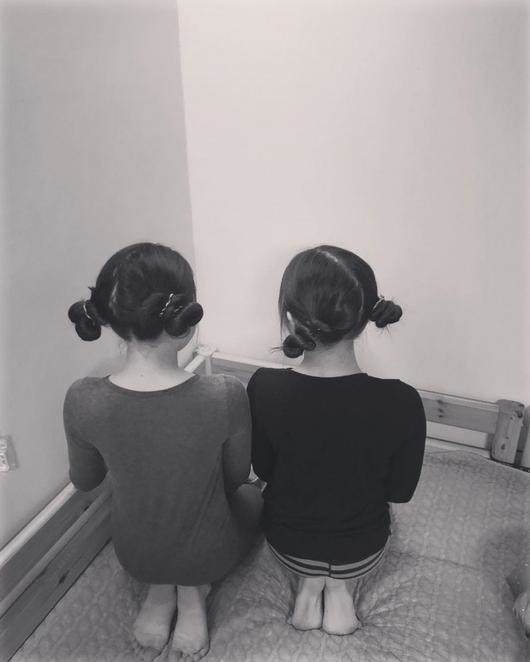 공개된 사진 속에는 전미라, 윤종신 부부의 두 딸이 양갈래 머리를 한 뒷모습이 담겨 있다. 둘의 귀여운 모습이 엄마미소를 짓게 만든다.