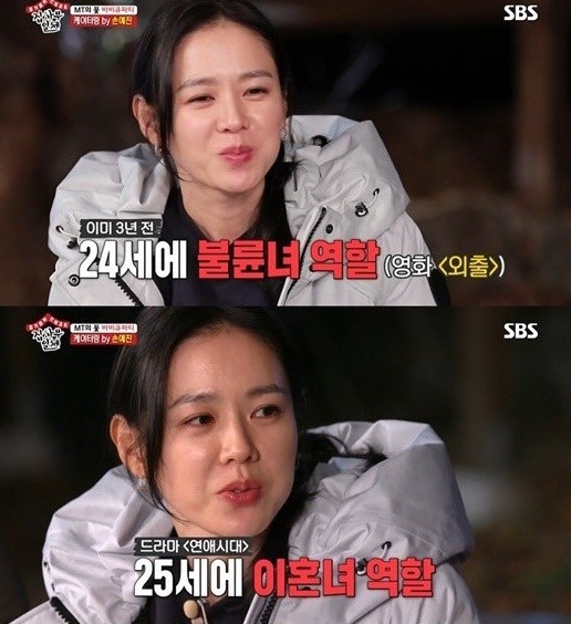그는 2008년 ‘아내가 결혼했다’ 당시를 떠올리며 “27살이었다”고 말했다. 손예진은 이어 “내가 24살에 (영화 ‘외출’에서) 불륜녀 역할을 했었다. 25살 ‘연애시대’에서는 이혼녀 역할을 했었다”고 전했다.
