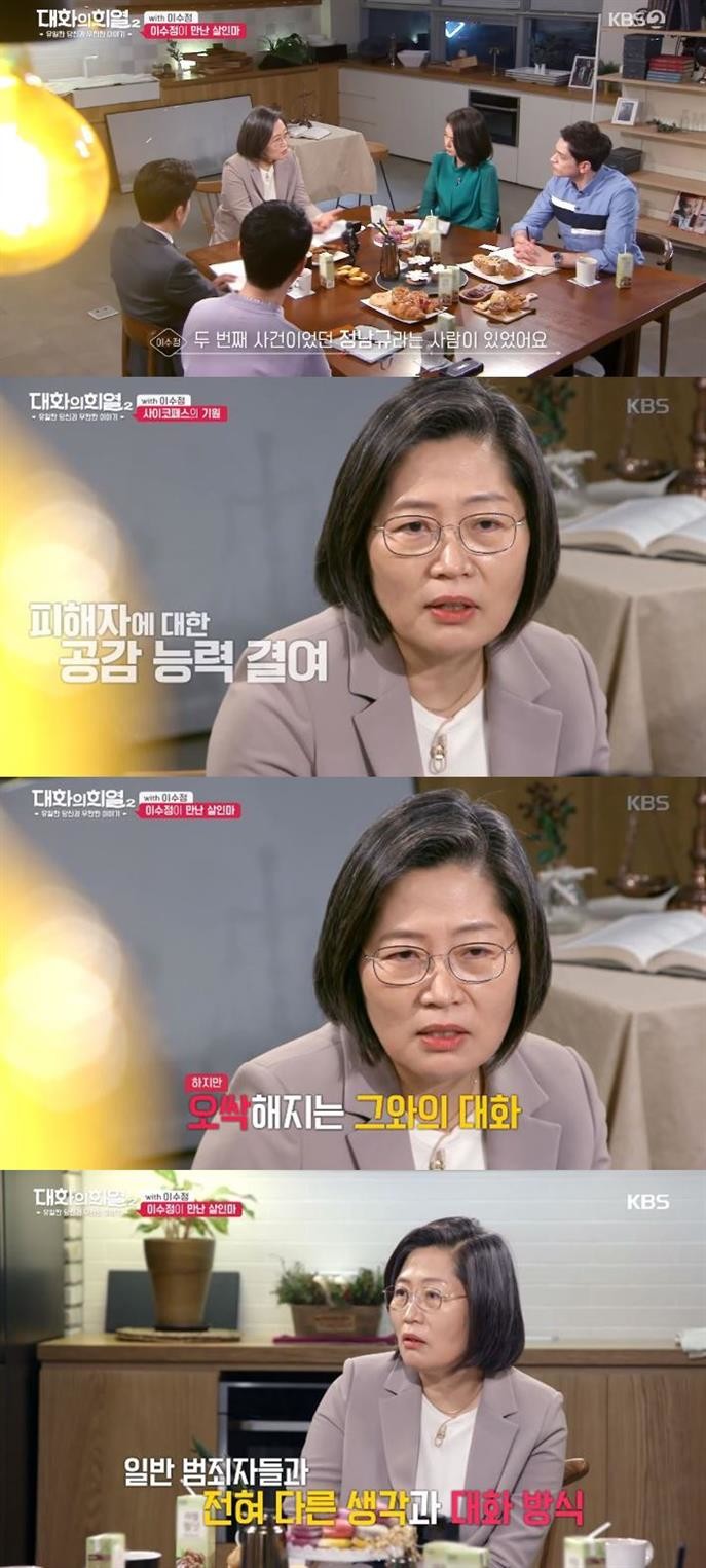 최근 방송된 KBS2 ‘대화의 희열2’에서는 대한민국 1세대 범죄심리학자 이수정이 출연해 대화를 나누는 모습이 전파를 탔다.