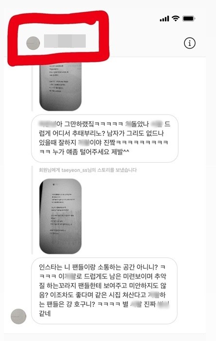 해당 메시지를 보낸 계정은 현재 삭제된 상태다. 또한 태연이 게재했던 스토리 역시 삭제됐다.