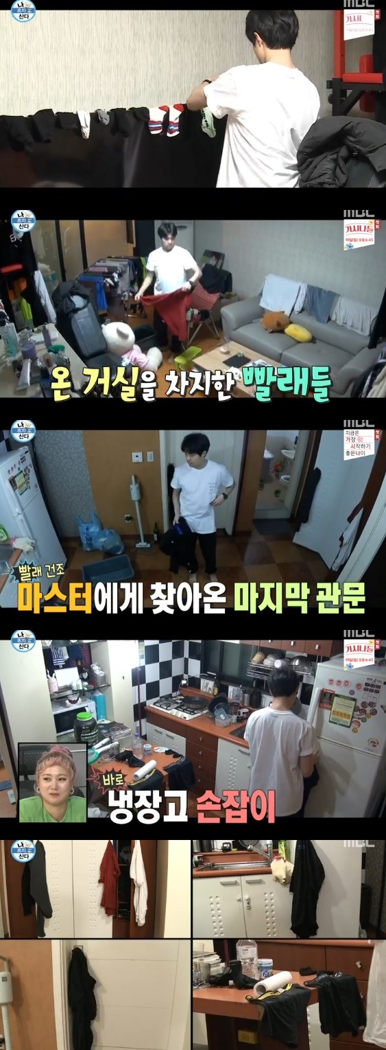 급속 세탁으로 돌린 많은 빨래들을 다 널기엔 건조대가 부족했다. 조병규는 쇼파, TV, 식탁 등 보이는 공간에 빨래를 널기 시작했다. 마지막 빨래 한 장을 두고 그는 진지하게 고민에 빠졌다. 이내 냉장고 문고리에 걸며 공간 창출력을 보여 웃음을 안겼다.