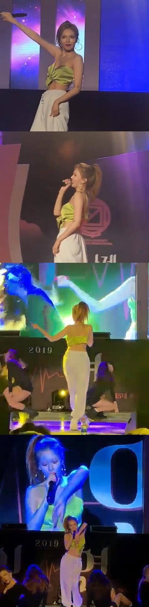 이후 현아는 공연을 지속하며, 옷매무새를 가다듬었다.