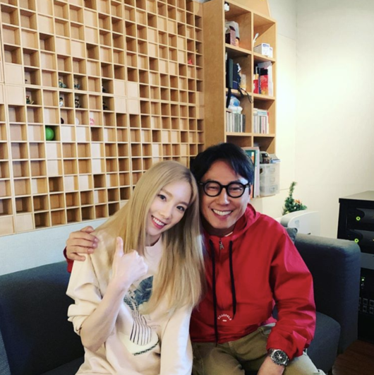태연과 함께 찍은 사진도 공개됐다. 윤종신은 태연의 옆에서 환한 미소를 짓고 있다. 태연 역시 엄지를 치켜들며 밝은 미소를 보이고 있다.