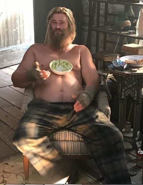 코믹북닷컴은 16일(현지시간) 극중에서 뚱뚱한 토르로 등장하는 크리스 헴스워스의 사진 두 장을 소개했다.