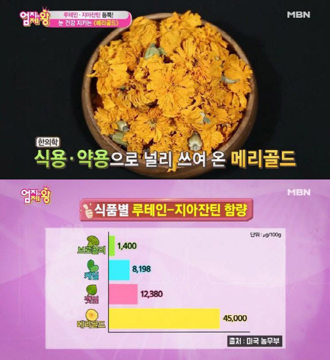 이어 "메리골드 외에도 루테인이 풍부한 음식으로는 깻잎, 케일, 브로콜리 등이 있다"라고 부연했다.