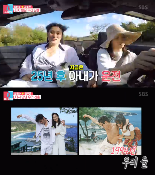 이날 최민수, 강주은 부부는 25년 전 신혼여행 때 찾았던 사이판 곳곳을 방문했다. 25년 전 사진을 촬영했던 장소를 찾아가던 중 최민수는 “25년 전에는 내가 운전했지만, 이제는 언니가 운전하고 있잖아. 뭔가 느낌이 있어”라며 “여보가 이제는 인생을 드라이브해주는 느낌이다”라고 말했다.