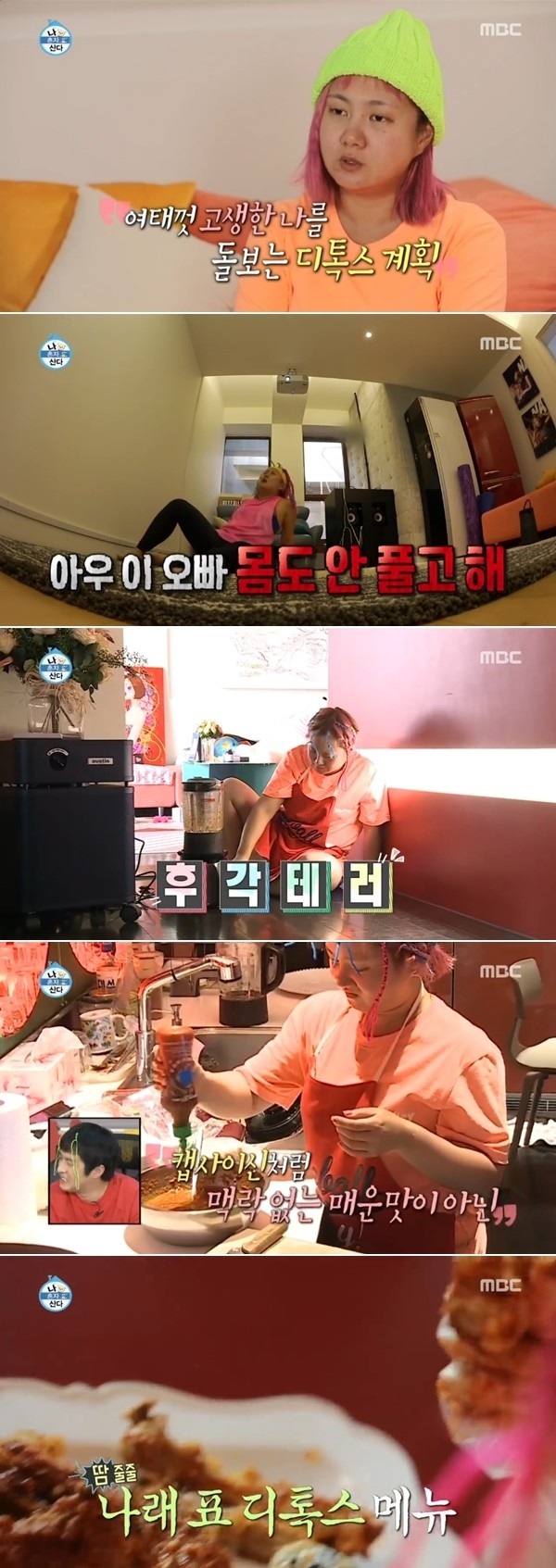 최근 방송된 MBC '나 혼자 산다'에서 박나래는 쉬는 날을 맞아 디톡스를 하겠다고 나서는 모습이 시청자들을 찾아갔다.