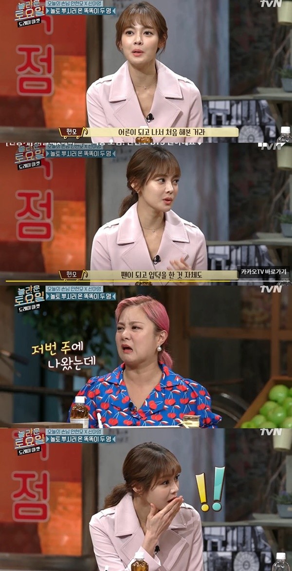 이를 듣던 코미디언 박나래는 "저번 주에 방탄소년단 나왔다"고 말했다. 안현모는 놀라는 모습을 보이며 "저번 주에 정말 나왔냐"며 놀라워했다.