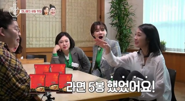 음식이 나오기 전 정은지는 "한때 5봉이었다. 라면 다섯개를 먹은 적이 있다"고 말했고 장도연의 "63kg 시절에?"라고 묻자 그렇다고 수긍하며 "모르는 분이 들으면 63년생인 줄 알겠다"고 반응했다.