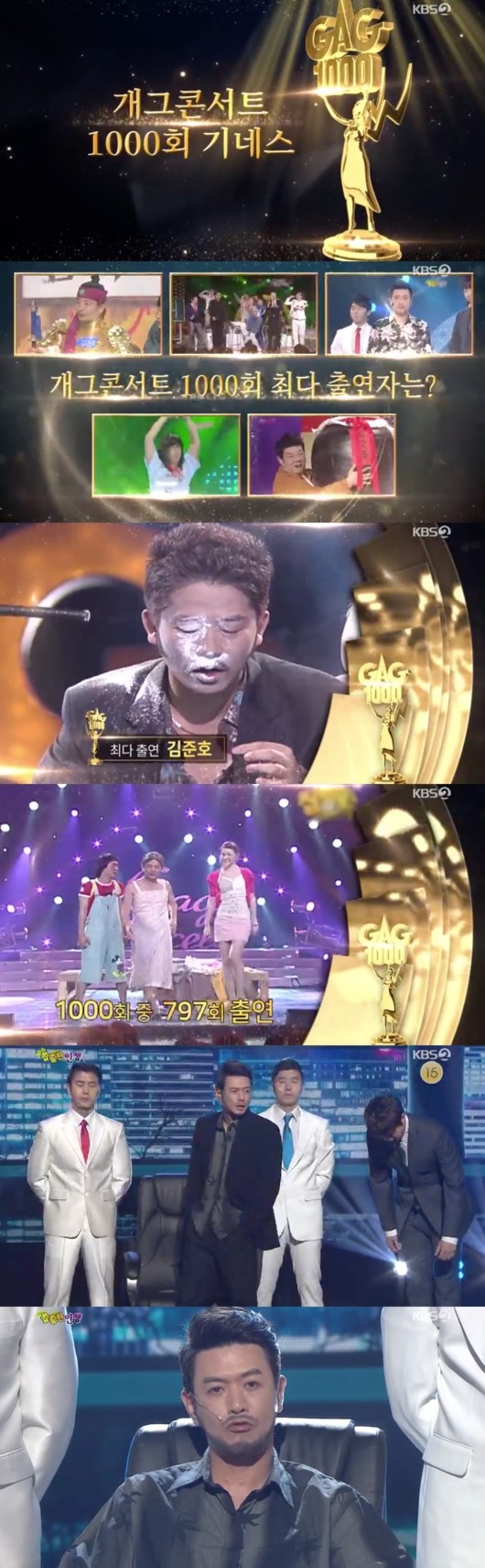 1000회 동안 출연한 이들은 모두 552명이었고 시청자들 앞에 내세웠던 코너는 총 1545개였다. 최장수 코너는 3년 11개월 동안 무려 200회가 방영된 ‘달인’이었고 ‘개그콘서트’는 연말 시상식에서 ‘시청자들이 뽑은 최고의 프로그램’ 등 156개의 트로피를 가져갔다.