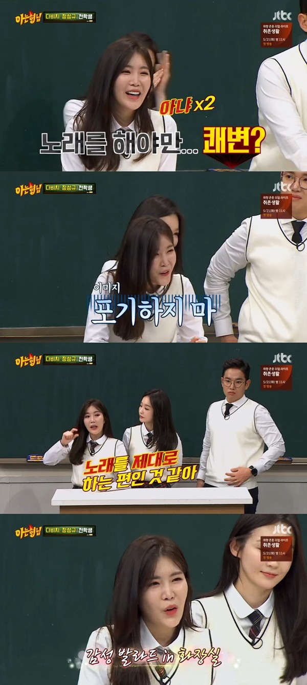 이해리는 "화장실에서 기분이 좋아서 노래를 부른다. 시원하면 기분이 좋을 수도 있지 않냐"고 너스레를 떨었다.